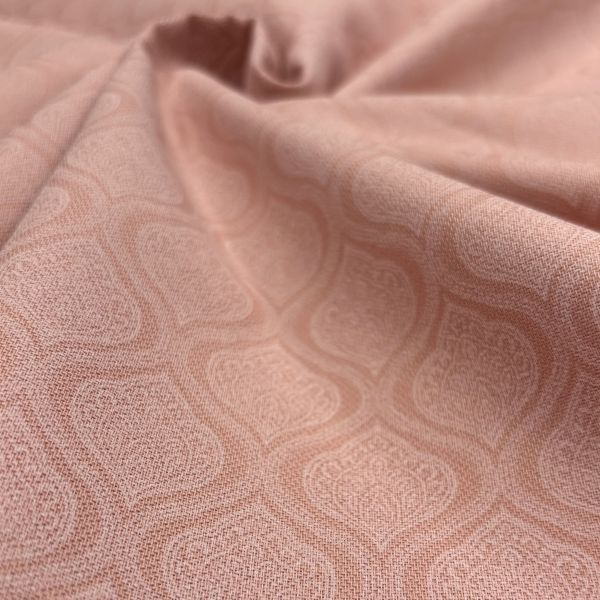 Ein edler Baumwollköper mit filigranem Ornament-Muster in warmem Apricot. Die leicht strukturierte Oberfläche verleiht dem Stoff eine angenehme Haptik, während die hochwertige Baumwollqualität für Langlebigkeit und höchsten Tragekomfort sorgt. Ideal für elegante Trachtenmode, Blusen oder festliche Kleider.
