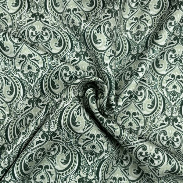 Dieser edle Baumwollsatin mit großflächigem Ornament-Muster in Grün und Lindgrün besticht durch seine elegante, natürliche Farbgebung. Der sanfte Glanz des Satins und sein weicher Griff verleihen dem Stoff eine luxuriöse Ausstrahlung. Ideal für elegante Dirndl, Blusen oder festliche Sommerkleider.