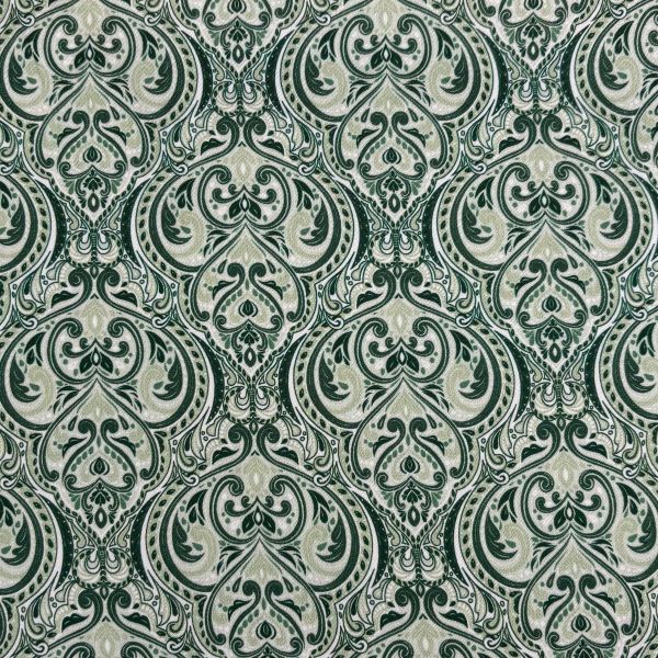 Artikelnummer: H25215Ein Baumwollsatin mit großem Ornament-Muster in Grün und Lindgrün bringt frische Eleganz in Ihre Sommergarderobe – ideal für Dirndl und Trachten.
