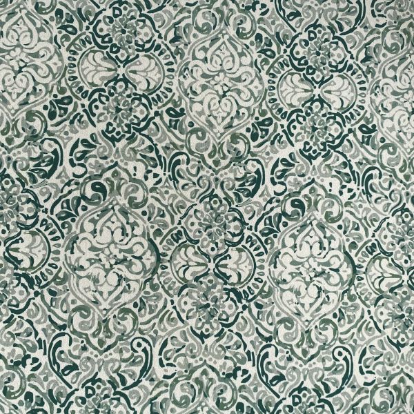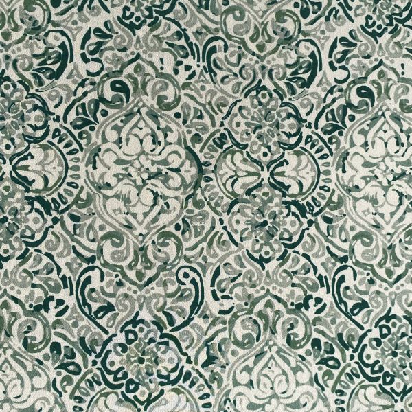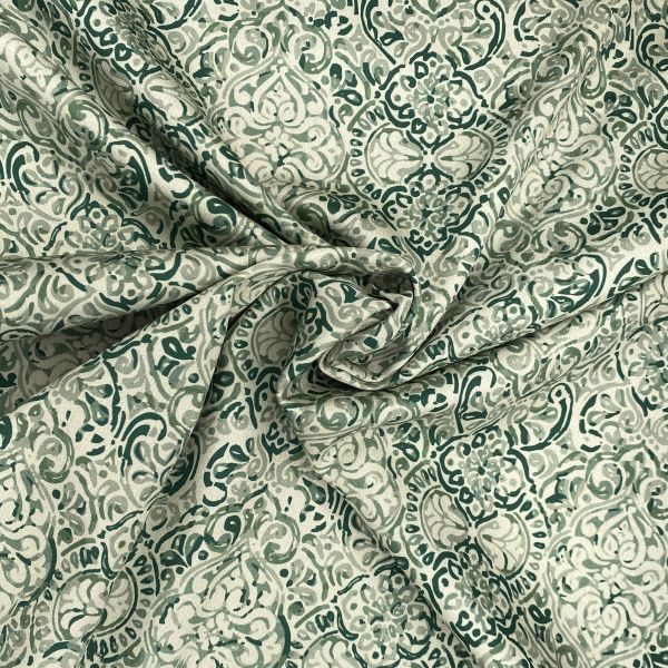 Artikelnummer: H24124Malerischer Baumwolldruck, ideal für Dirndl, Schürzen & Co, zeigt ein aquarellähnliches Ornament-Muster in Jade und Dunkelgrün.