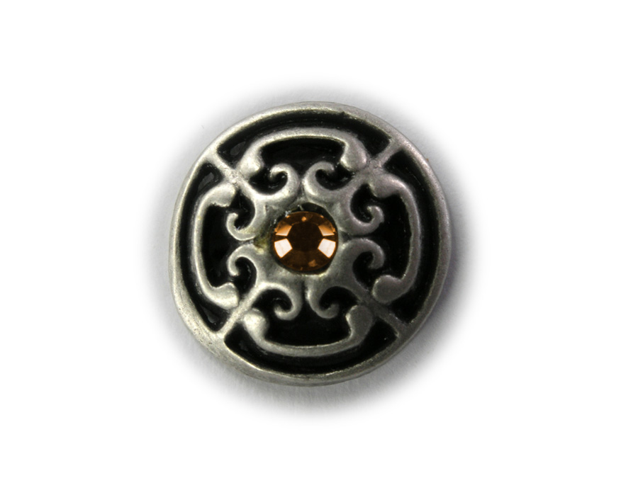 Dirndlknopf altsilber Ornament 14mm, Swarovski-Stein topas