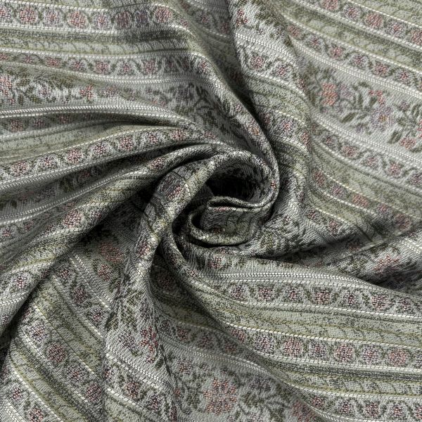 Dieser charmante Jacquardstoff besticht durch seine Querstreifen in den harmonischen Farben Brandung, Rosa und Oliv, verziert mit einem zarten Blumenmuster. Die Mischung aus Polyester und Viskose sorgt für einen edlen Glanz und eine angenehme Haptik. Besonders praktisch ist die Pflegeleichtigkeit: Der Stoff kann im Schonwaschgang bei 30 °C gereinigt werden. Ideal für festliche Dirndl, Schürzen oder andere elegante Bekleidungsstücke, bringt dieser Stoff frischen Schwung in Ihre Garderobe.