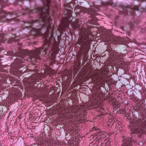 Dieser festliche Jacquardstoff verzaubert durch seine floralen Ornamente in Form von zarten Rosenranken. Der malaga-farbene Hintergrund wird durch die rosa Blüten elegant akzentuiert und macht den Stoff ideal für besondere Anlässe. Die Kombination aus Baumwolle, Polyester und Viskose verleiht ihm nicht nur einen edlen Look, sondern auch einen angenehmen Tragekomfort. Perfekt geeignet für festliche Dirndl, Dirndlschürzen oder elegante Westen für den Herrn.